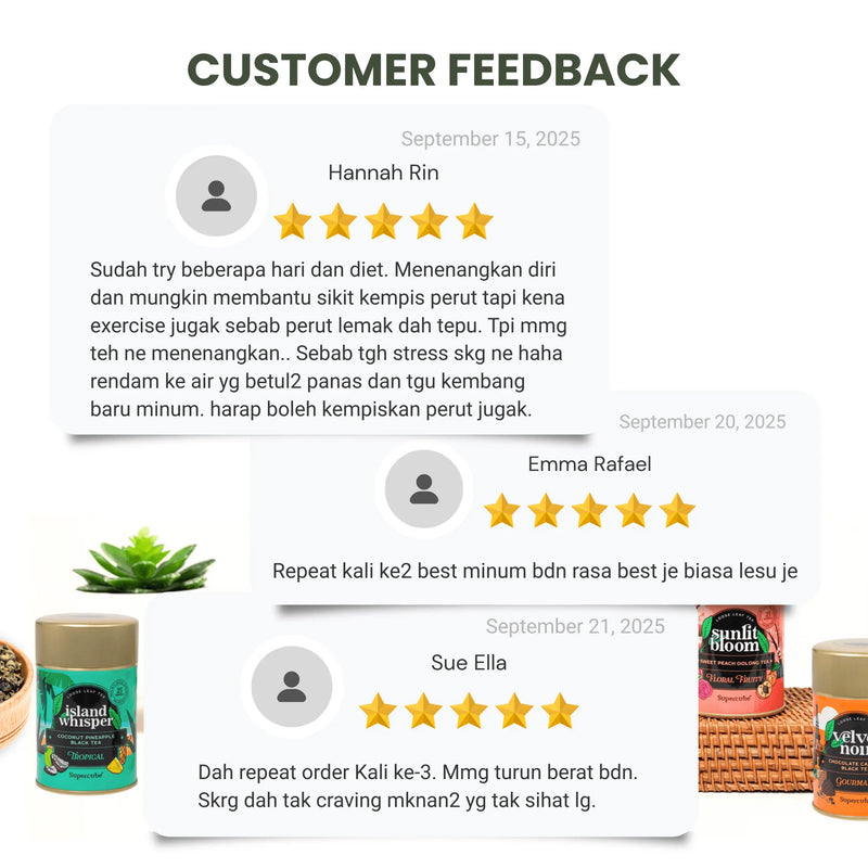 Mmg best teh ni.kurangkan craving makanan manis.Kurg rasa lapar.lepas mkn makanan berat..Minum teh ni perut x bloated.nk repeat order lgi.