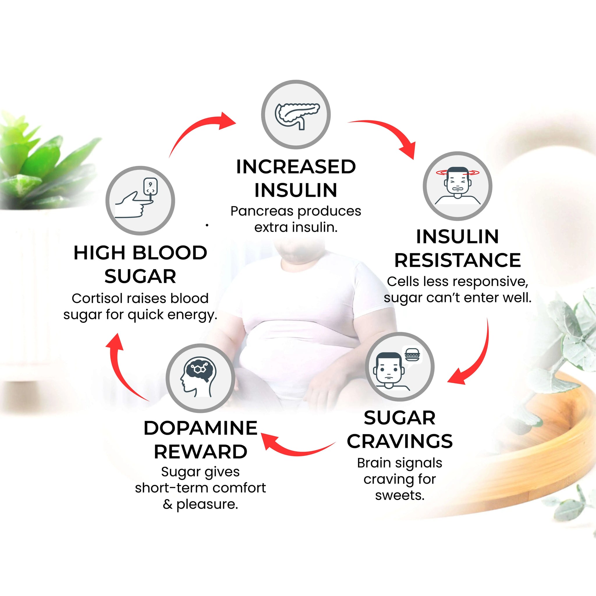 Ongoing stress locks your body into “storage mode” — intensifying sugar cravings, disrupting appetite control, and storing more fat, making weight gain almost inevitable.